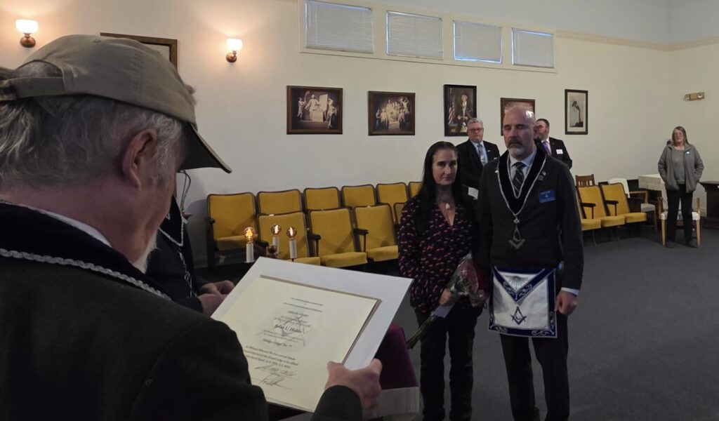 His wife Rebecca is deserving of recognition as well, for her willingness to help and support Freemasonry.